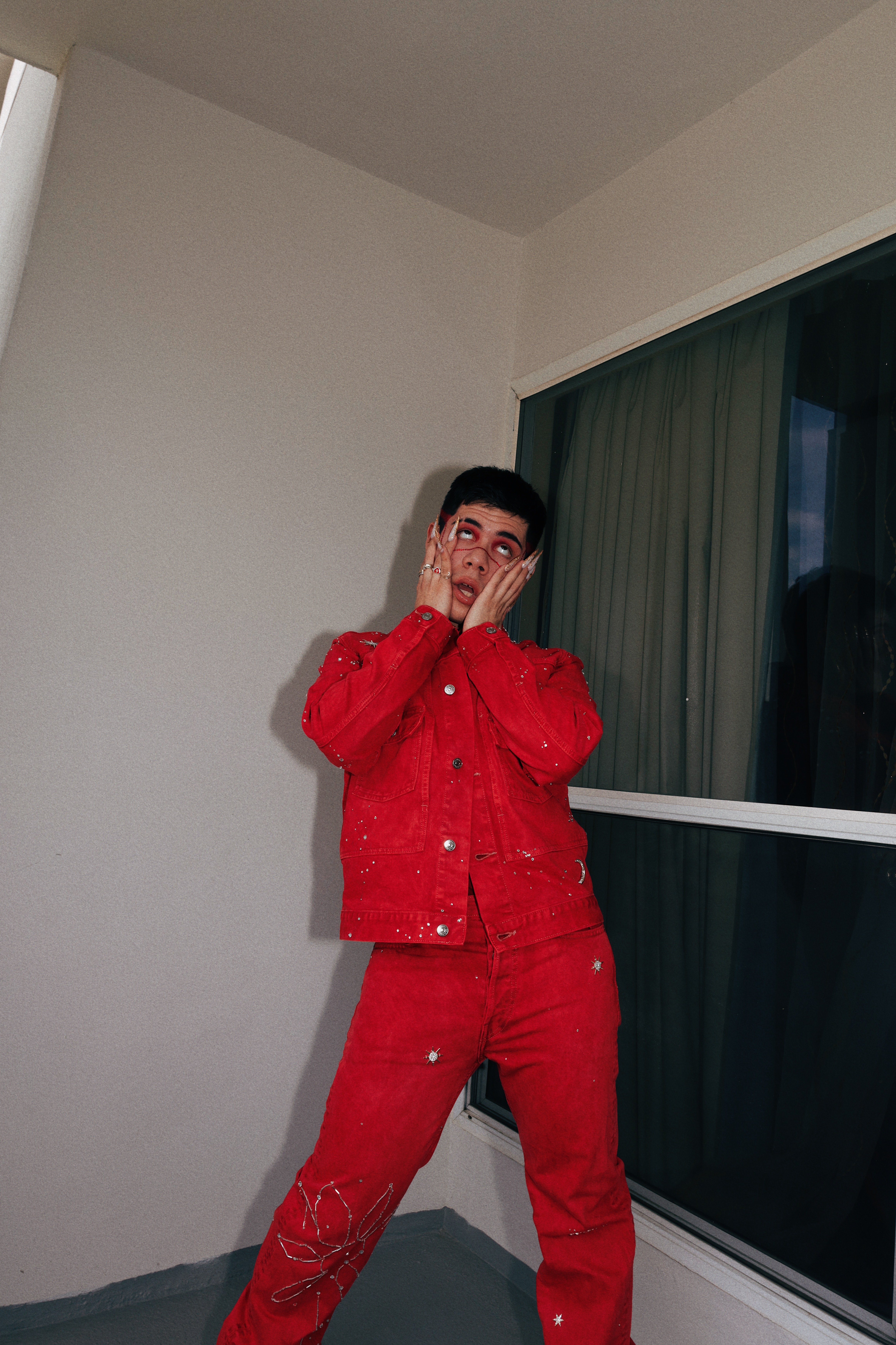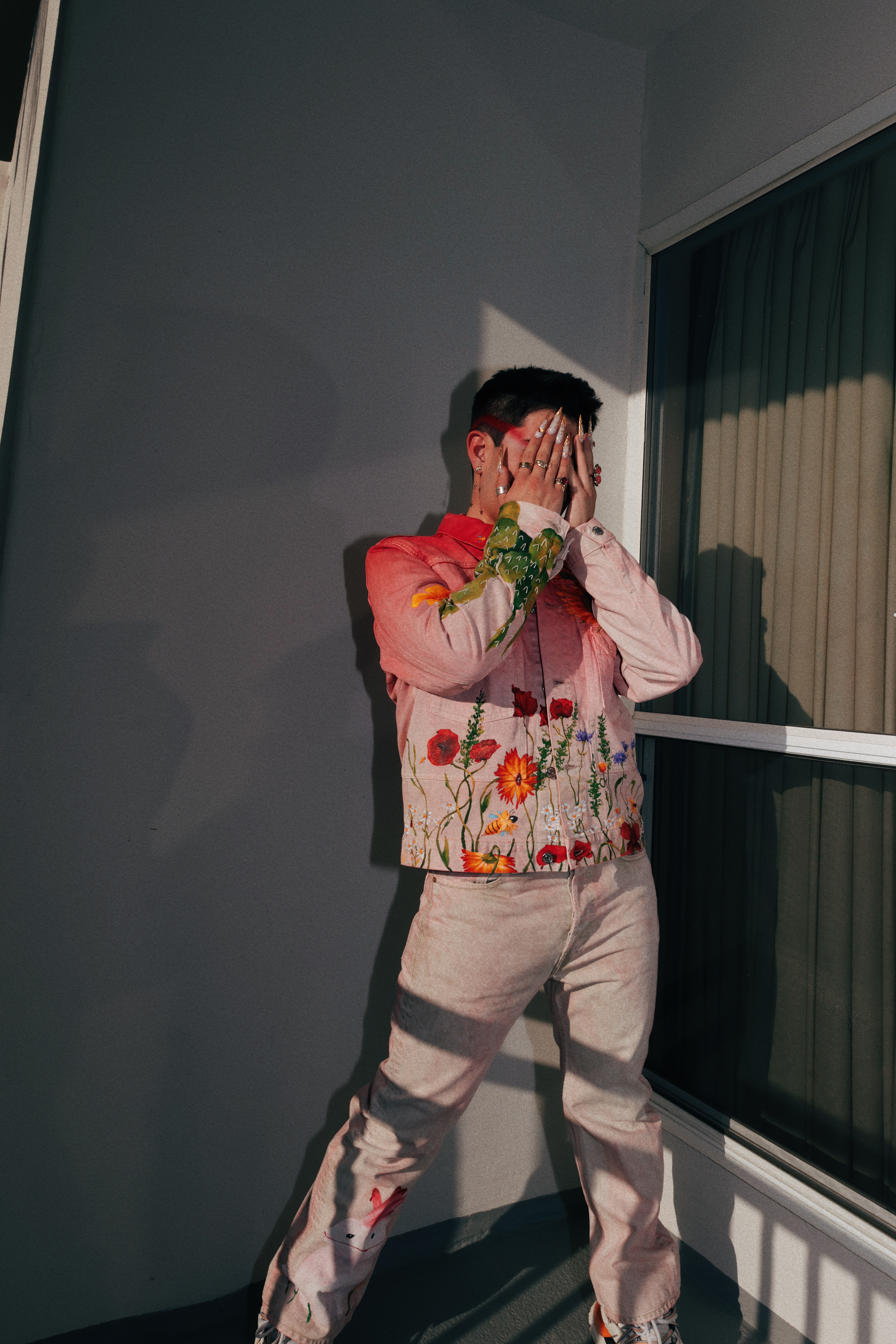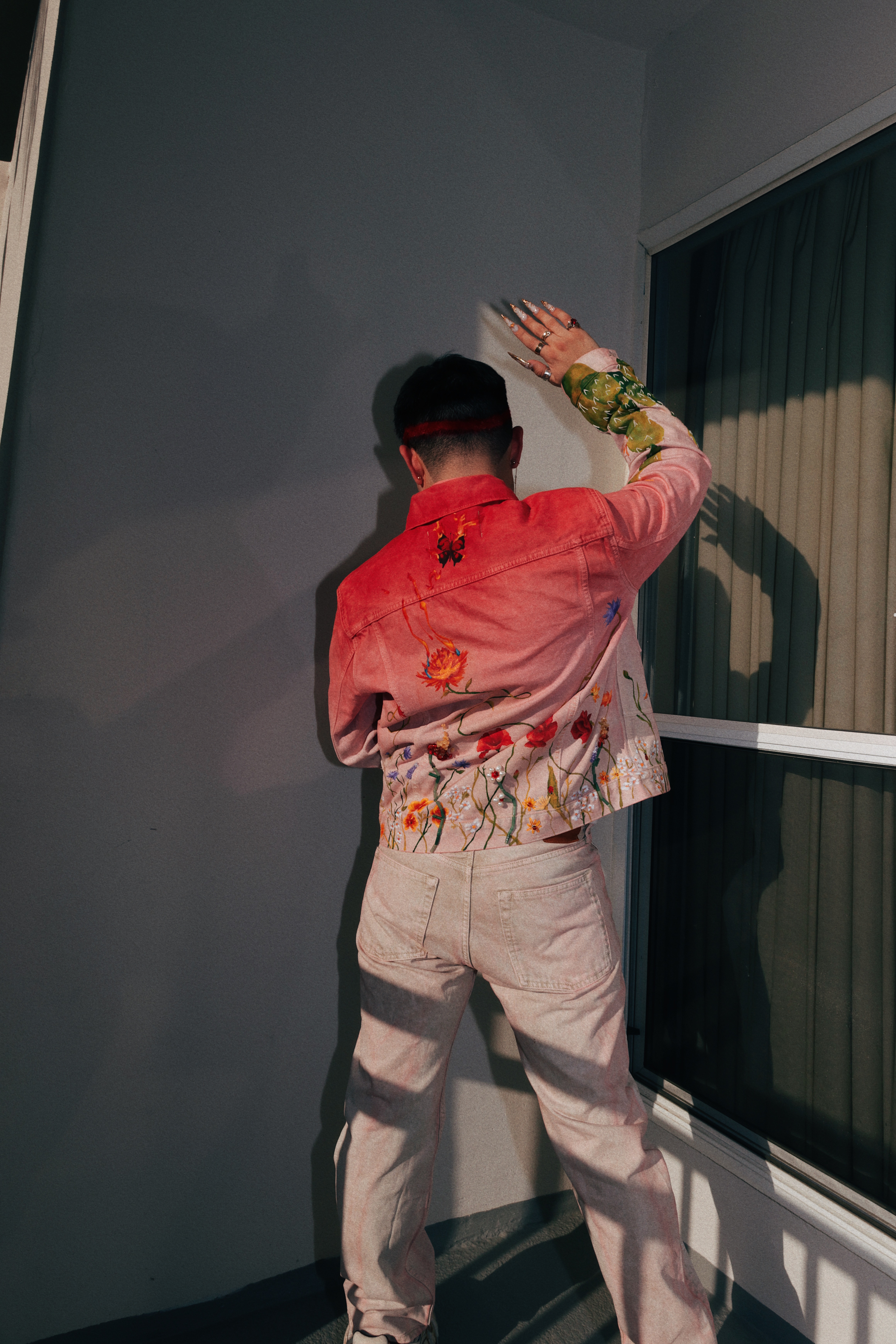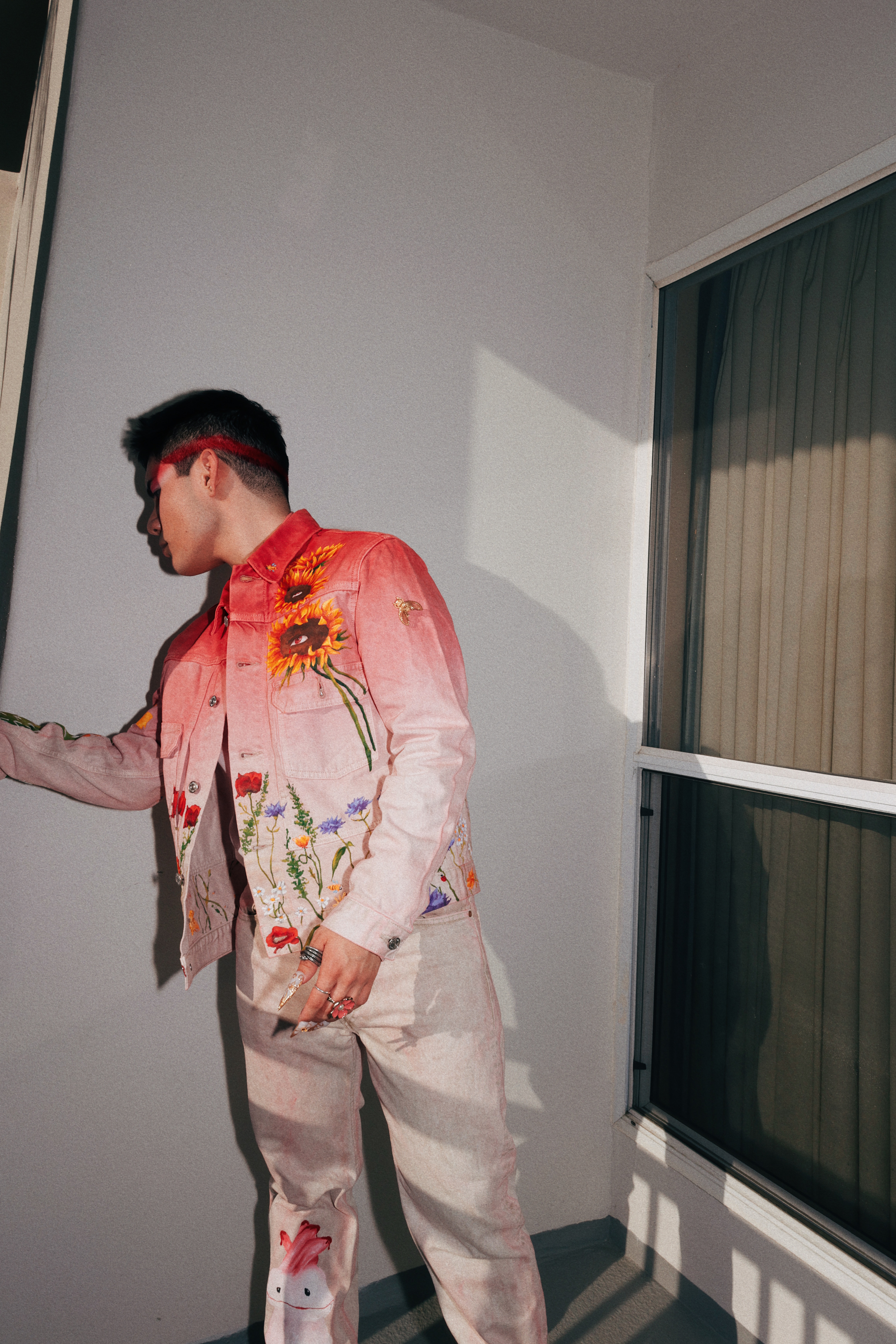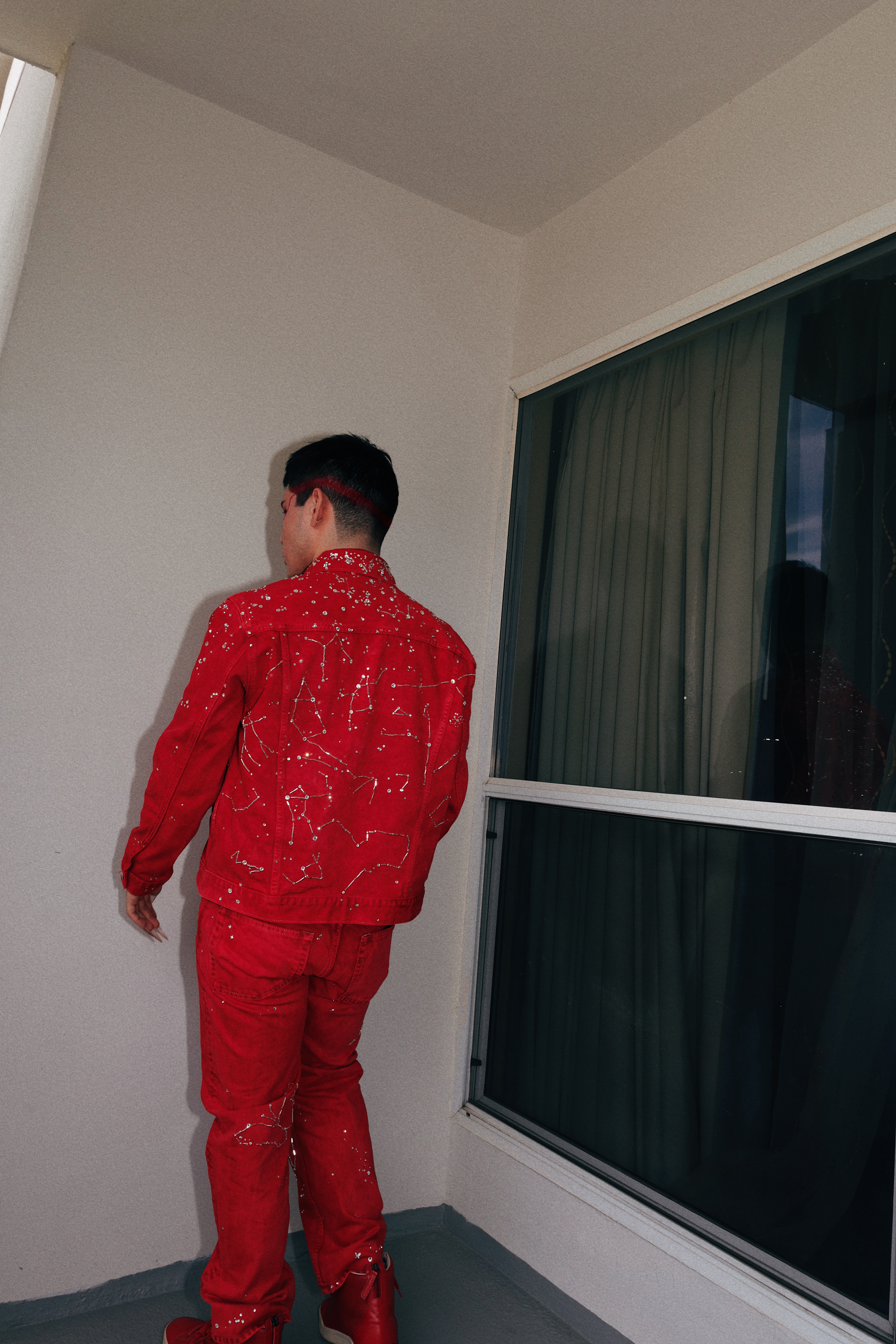 From blooming flowers to twinkling stars. Hand dyed, painted, embroidered, and crystal embelished on Calvin Klein denim.